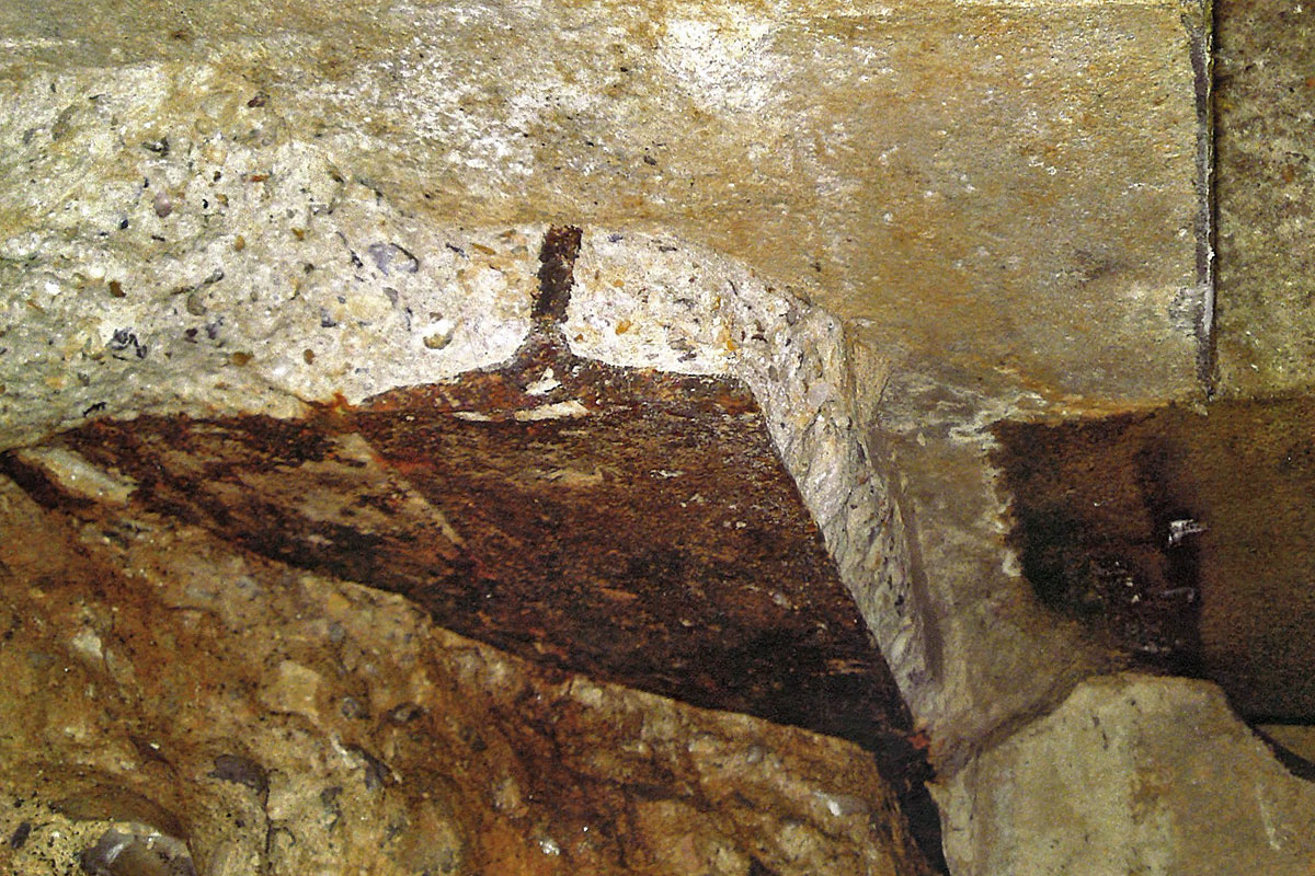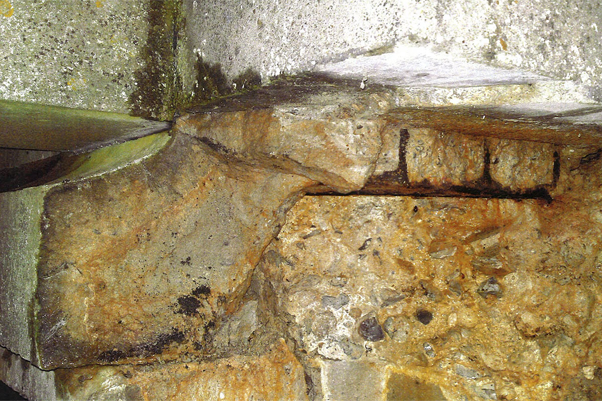 These latter defects prompted a poorly-designed intervention in 2009/10, whereby affected parts were repaired with unsympathetic Fletton bricks. It was confirmed at this time that the abutments’ brickwork and stringer/bearing blocks acted only as a superficial facing to the mass concrete core which incorporated steel beams projecting from its upper surface upon which the bridge girders were borne. In other words, whilst the cracks negatively impacted public confidence, they had no effect on structural capacity.